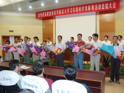 蒋吉生首先向我校在学习实践活动中涌现出的先进单位和个人表示祝贺。蒋吉生指出,徐州建筑职业技术学院开展学习实践活动党委高度重视、党员积极参与,精心组织、精细安排,活动成效显著,群众满意度高达98.4%,充分说明徐州建筑职业技术学院活动开展有声有色,效果实实在在。蒋吉生强调,学习实践科学发展观活动虽暂告一段落,广大党员同志更要把工作的焦点集中到学校的科学发展上来,坚持以科学发展观武装头脑、指导工作,推进学校科学发展的整体再上一个新台阶。
