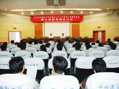 日前,我校召开学习实践活动群众满意度测评工作大会。校领导王旭善、袁洪志、吴光林、季翔、任留钦、张登宏出席测评大会,党委书记王旭善发表讲话,院长袁洪志主持会议。省高校学习实践活动第七指导检查组胡海民、徐才千、孙辉全程对我校测评工作进行了监督。