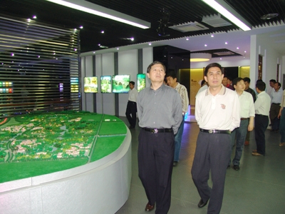 王旭善一行在铜山县县长毕于瑞、副县长常乐以及政府办、建设局、规划局、房管局、监管局、城管局、重点办负责同志的陪同下实地参观考察了铜山县在建的重点绿化、市政工程,部分知名企业以及铜山规划展示馆,并就校地合作共建进行了专题座谈。