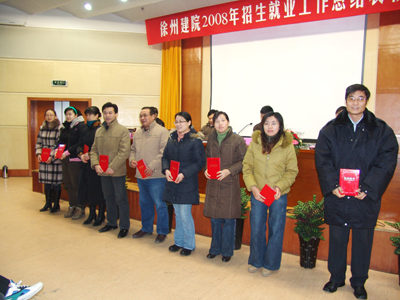 会上,学院对招生工作先进集体、就业工作先进集体及33名招生和就业先进个人进行了表彰。建筑与艺术系党总支书记姜尧发、体育部副主任刘晓分别代表先进集体和先进个人发言,介绍工作经验与今后工作的思路。