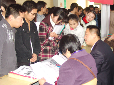毕业生正在看用人单位招聘牌
