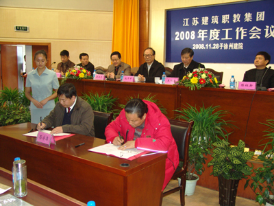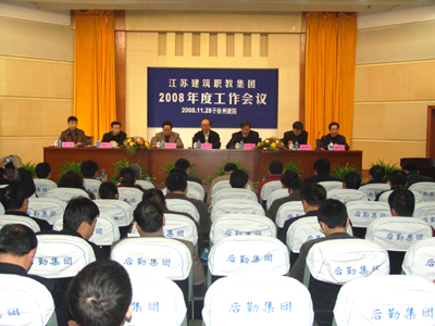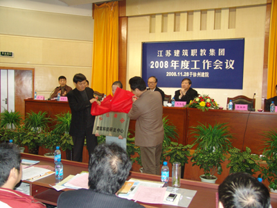 院党委书记王旭善致辞,他向各家企业代表的到来表示欢迎,向集团成员对集团工作和学院发展提供的帮助表示感谢,并预祝此次年会圆满成功。江苏建筑职教集团理事长袁洪志作2008年工作报告。袁洪志在报告中全面回顾了四年来江苏职教集团积极发挥平台、纽带作用,在促进校企合作,互惠互赢,提高专业领域人才培养方面取得的成绩和经验,并对2009年的工作提出新的构想。龙信集团董事长陈祖新、涟水职教中心副校长沈新民分别作了讲话。