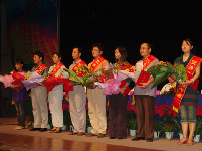 副院长季翔宣读了表彰决定。在喜庆的乐曲声中,院优秀教师、优秀辅导员和优秀教育工作者依次上台接受表彰。优秀教师代表人文与社会科学系佘敏老师和优秀辅导员代表土木工程学院