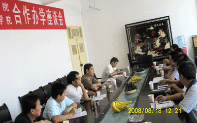 8月18日,院长袁洪志、副院长任留钦等一行6人来到陕西省铜川职业技术学院,洽谈双方合作办学事宜。铜川职业技术学院党委书记顾斌向来访的建院客人简要地介绍了铜川职院的办学概况;院长袁洪志向铜川职院友人介绍了我院近年来的发展情况。在座谈中,双方都表达了加深合作的意愿,期望在专业建设、实训基地建设、师资培训、人才培养模式改革等方面能够在近期内有深度合作的举措。