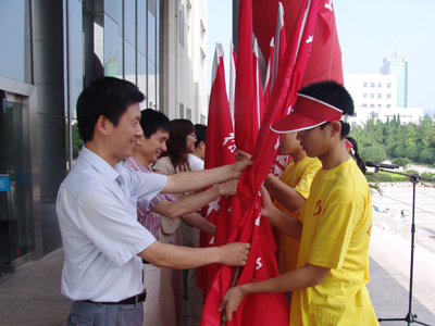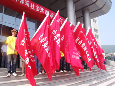 出征仪式上,团委书记梁惠就今年我院暑期社会实践活动提出了要求,进行了具体部署。接着举行了授旗仪式,出席仪式的领导为各系(院)社会实践服务团授旗,院学生会主席刘村代表全体实践团队成员讲话。 吴光林代表学院向即将奔赴祖国各地参加“三下乡”的同学 据悉,今年暑期,我院组织了40余支社会实践小分队赴全国各地开展“服务地方经济社会发展的实践活动”、“普及防震减灾知识,服务地震灾区重建,弘扬抗灾精神的实践活动”、“服务青年学生成长成才的实践活动”等形式多样的服务活动。