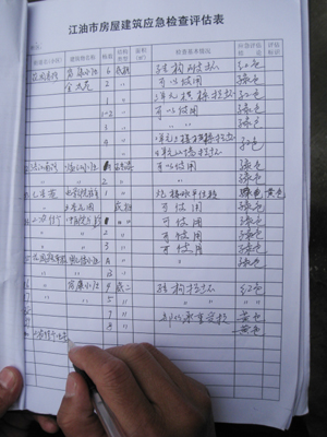 5月22日,我院专家组一行根据计划,在江油市政府的统一安排下,分成四组,与政府工作人员、清华大学专家、建科院专家、江油市专业技术人员一起完成了市区剩余近40栋房屋安全检查工作,季翔副院长作为唯一专家还应邀参加了江油市政府市长办公会,参与讨论了前期市区房屋安全检查情况,对下一步房屋安全检查工作进行了研讨。季院长从专业角度提出了灾后重建的建设性意见,为市委决策提供了重要参考,江油市领导对徐州建院对灾区的支持和辛勤的工作给予了肯定和感谢。5月23日,工作组将参加六个组共计四十个乡镇房屋的安全检查工作。