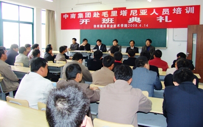 中南集团在我院举办赴毛里塔尼亚人员培训班,旨在通过我院优越的培训环境和师资,为企业培训钢筋工、木工等方面的技能型实用人才。通过培训,使学员能够学习并掌握钢筋工、木工等方面的知识和操作技能,使学员能够达到上岗即能顶岗。