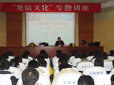 12月30日下午,龙信集团黄裕辉副董事长受我院邀请,在学术报告厅为我院部分师生作了题为《龙信文化》的专题报告。副院长张登宏主持了报告会。