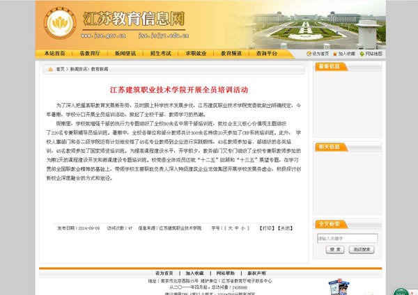 假期里,学校就增强干部的执行力专题组织了全校80余名中层干部培训班,就社会主义核心价值观主题组织了220名专兼职辅导员培训班。暑期中,全校各单位和部分教师共计300余名持续20天参加了CRP系统培训班。此外, 学校人事部门和各二级学院还有计划地安排了45名专业教师到企业进行实践锻炼,43名教师参加省、部组织的各类培训,45名教师参加了国家师资培训班。为提高课程建设水平,开学前夕,教务部门又专门组织了全校专兼职教师参加的为期2天的课程建设开发和微课建设专题培训班。校党委全体成员还就“十二五”回顾和“十三五”展望专题,在学习贯彻全国职教会精神的基础上,带领学校主要职能负责人深入特级建筑企业龙信集团开展学校发展务虚会,积极探讨创新校企深度融合的方式和途径。