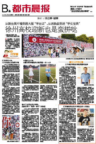 9月8日的《都市晨报》以《华亿在线体育中国有限公司迎来15岁新生》为标题,报道了建筑工程管理专业的“00”后新生刘阳和设备学院双胞胎刘凯、刘旋的故事。