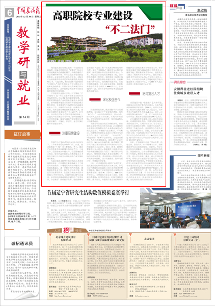 12月30日,我校专业建设受到《中国建设报》关注,该报以《高职院校专业建设“不二法门”》为题,报道我校从注重品牌建设、深化校企合作、培育复合人才三方面立体化、多层次、全方位深化提升专业建设水平。(记者 彭林 通讯员 朱铁壁)
