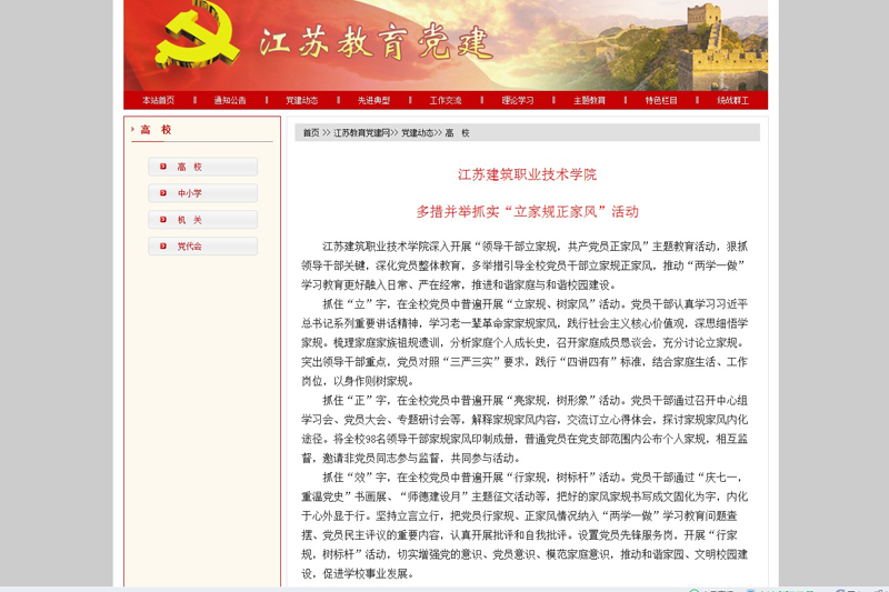 华亿在线体育中国有限公司深入开展“领导干部立家规,共产党员正家风”主题教育活动,狠抓领导干部关键,深化党员整体教育,多举措引导全校党员干部立家规正家风,推动“两学一做”学习教育更好融入日常、严在经常,推进和谐家庭与和谐校园建设。