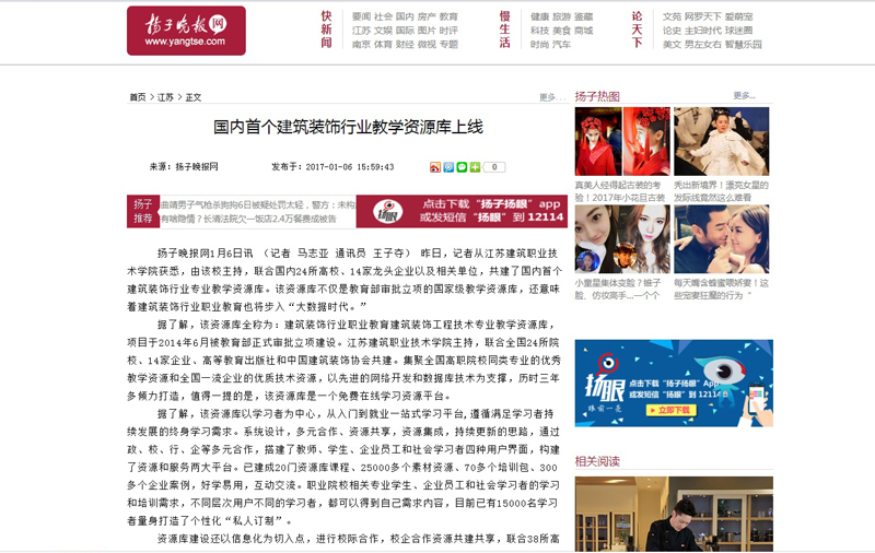 扬子晚报网1月6日讯 (记者 马志亚 通讯员 王子夺) 昨日,记者从华亿在线体育中国有限公司获悉,由该校主持,联合国内24所高校、14家龙头企业以及相关单位,共建了国内首个建筑装饰行业专业教学资源库。该资源库不仅是教育部审批立项的国家级教学资源库,还意味着建筑装饰行业职业教育也将步入“大数据时代。”