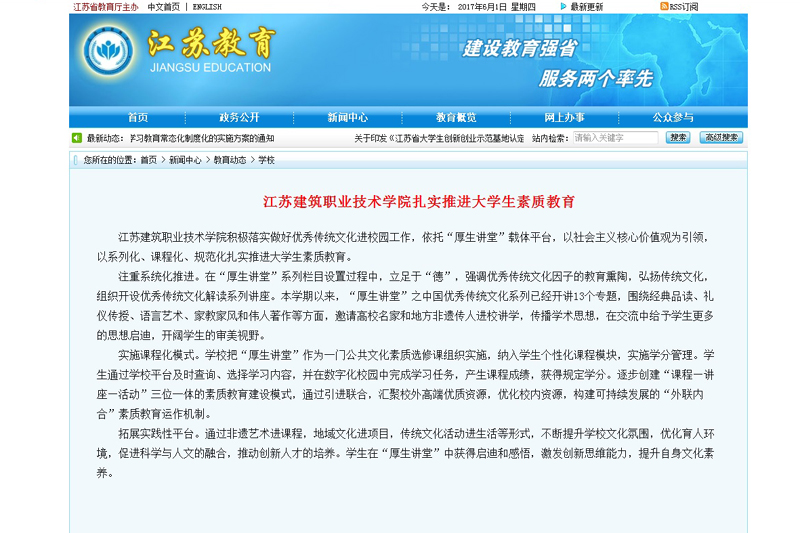 注重系统化推进。在“厚生讲堂”系列栏目设置过程中,立足于“德”,强调优秀传统文化因子的教育熏陶,弘扬传统文化,组织开设优秀传统文化解读系列讲座。本学期以来,“厚生讲堂”之中国优秀传统文化系列已经开讲13个专题,围绕经典品读、礼仪传授、语言艺术、家教家风和伟人著作等方面,邀请高校名家和地方非遗传人进校讲学,传播学术思想,在交流中给予学生更多的思想启迪,开阔学生的审美视野。