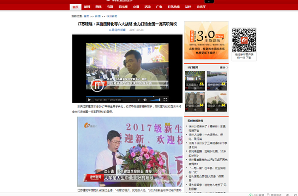 9月23日,我校举行2017级新生开学典礼,校领导激情寄语新同学,同时宣布我校在未来将实施国际化等六大战略,全力打造全国一流高职院校,受到徐州电视台关注。