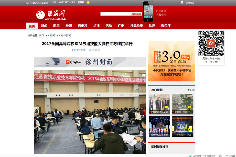 淮海网:2017全国高等院校BIM应用技能大赛在江苏建院举行