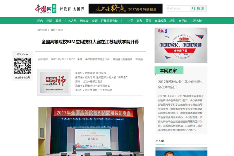 中国网:全国高等院校BIM应用技能大赛在江苏建筑学院开幕