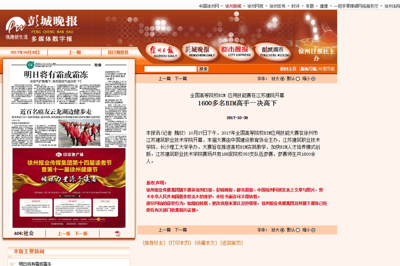 《彭城晚报》:全国高等院校BIM应用技能赛在江苏建院开幕