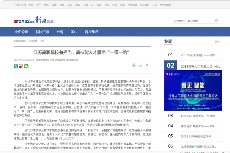2018年中非合作论坛北京峰会,将于9月3日至4日举行。日前,科技日报记者在高职系统采访了解到,自习近平主席2013年提出“一带一路”重大合作倡议以来,江苏高职学校抓住机遇,发挥高职教育资源优势,加速专业结构的转型升级,加强国际交流与合作,创新办学体制机制和模式,不断提升国际合作办学的能力和实力,已培养出来了一大批国际型高技能人才,为中国企业加速“走出去”和“一带一路”沿线国家产业发展,提供了强有力的人才支撑。