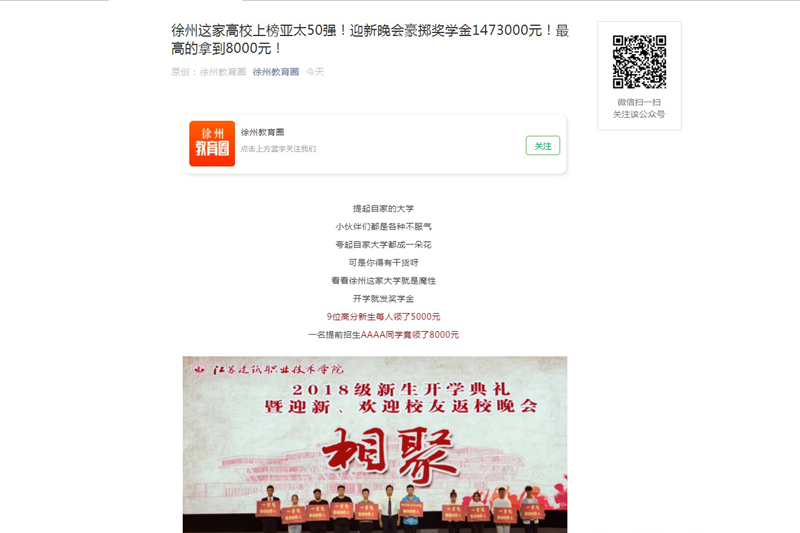 近日,微信公众号《徐州教育圈》关注我校上榜亚太50强、开学典礼。