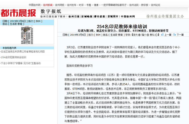 据悉,印尼高校教师海外培训项目(江苏)是一项印尼教育与文化部全额资助的培训项目,华亿在线体育中国有限公司作为本次培训的中方联络单位和主要承办单位,中国矿业大学和江苏师范大学也分别承担一些项目。本次培训活动为期三周,参训人数254人,培训范围涵盖高校校长领导力培训、纺织服装、STEM项目、影视动画制作、信息技术应用、非正规教育教职员工管理等多项内容。