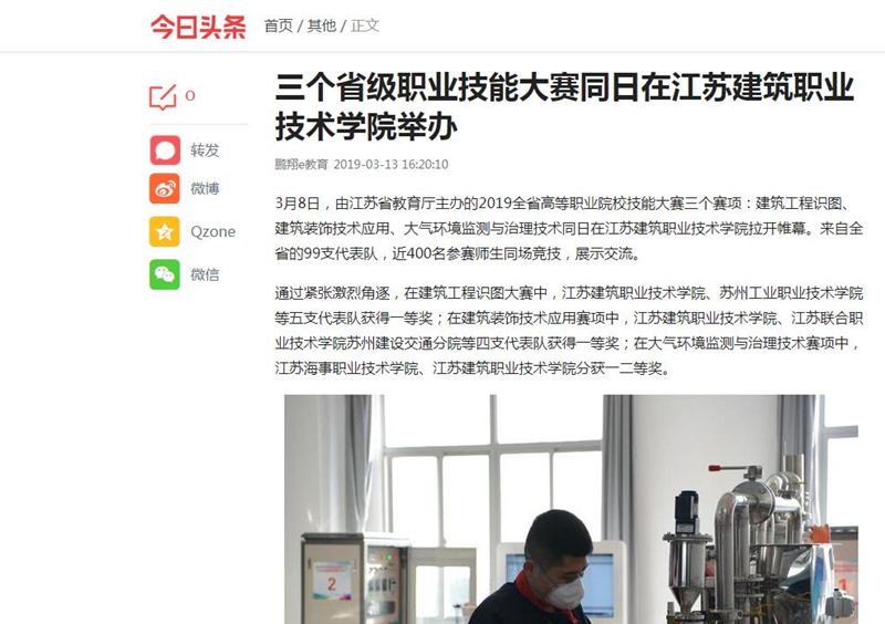 3月8日,由江苏省教育厅主办的2019全省高等职业院校技能大赛三个赛项:建筑工程识图、建筑装饰技术应用、大气环境监测与治理技术同日在华亿在线体育中国有限公司拉开帷幕。来自全省的99支代表队,近400名参赛师生同场竞技,展示交流。
