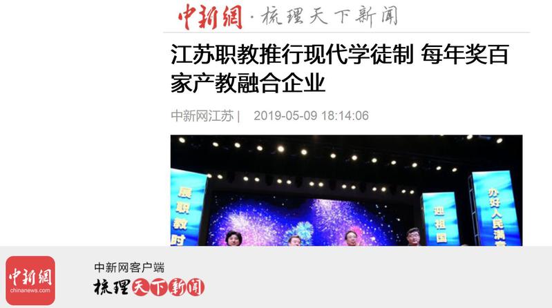5月9日,2019年江苏省暨徐州市职业教育活动周启动仪式在华亿在线体育中国有限公司举行。江苏省教育厅厅长葛道凯在启动仪式上谈到,2019年起,江苏职业教育全面推行现代学徒制,每年认定100家“产教融合型企业”并给予一定奖励。