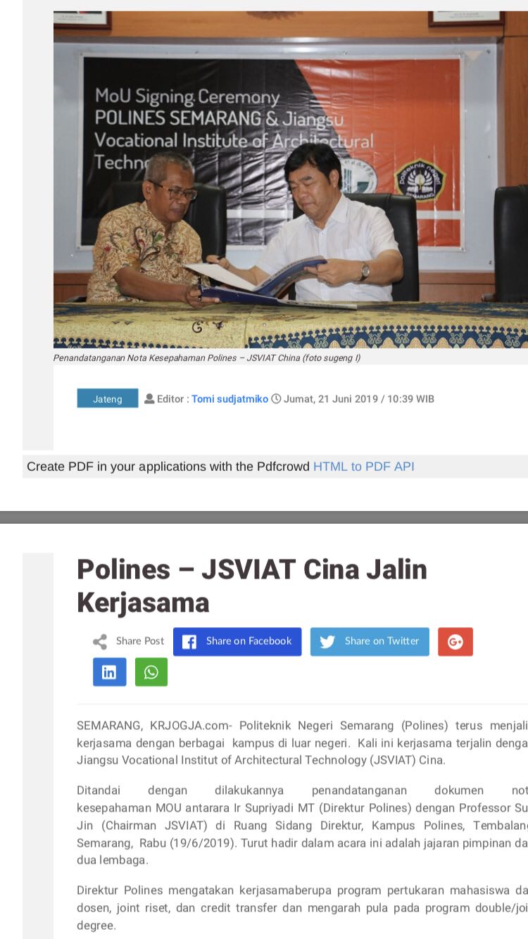 江苏建院代表团访问印尼中爪哇省教育机构,受到印度尼西亚省级报纸《印尼人民团结报》报道关注。