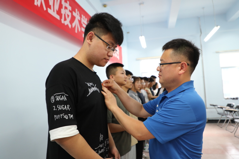 本次入团仪式在集体奏唱国歌中拉开序幕。校团委副书记陈昕对新团员寄予了殷切希望,希望新团员们能时刻以优秀共青团员的标准来严格要求自己,努力学习,积极发挥先锋模范作用,为班级、为学校的发展献出自己的力量,为团组织注入新鲜的活力。校团委组宣部蒋德平宣读了9位新团员名单,并对这新团员加入中国共青团表示祝贺。各学院团委书记向新团员颁发团员证并佩戴团徽。在校团委学生兼职副书记杨之鹏同学的带领下,全体新团员一起庄严宣誓。装饰18-4班的李壮同学作为新团员代表发言,他表示能够成为一名共青团员深感自豪,所有的团员同学应不忘初心、牢记使命,全心全意地为身边的每一位同学服务。