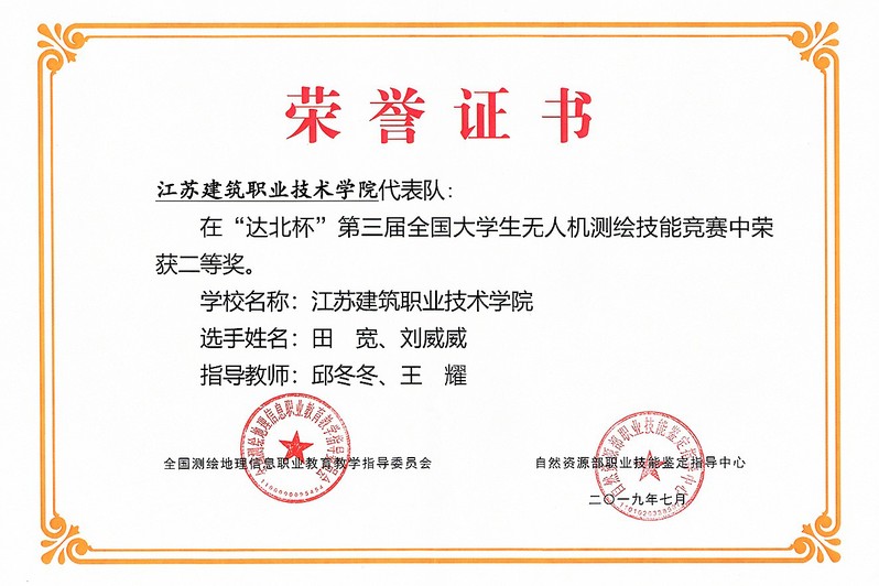 7月18日,“达北杯”第三届全国大学生无人机测绘技能竞赛在山东水利职业学院落下帷幕。来自全国23个省、直辖市、自治区及中国人民解放军的78支本、专科院校代表队参加比赛。我校由建筑建造学院邱冬冬、王耀两位老师指导的遥测17-1班刘威威、田宽两位同学组成的代表队在比赛中顽强拼搏,荣获二等奖。
