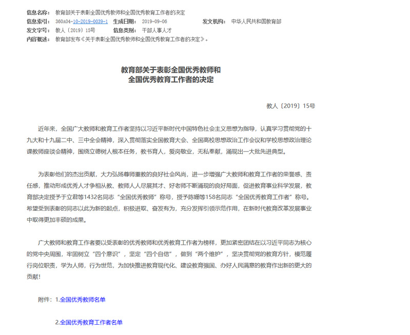 近日,教育部官网公布了《关于表彰全国优秀教师和全国优秀教育工作者的决定》(教人〔2019〕15号),我校艺术设计学院李楠老师被授予“全国优秀教育工作者”称号。