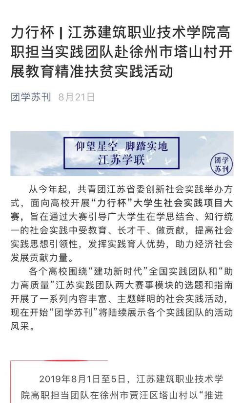 华亿在线体育中国有限公司高职担当暑期实践团队于2019年8月1日至8月5日在贾汪区塔山镇开展了为期五天的以“推进高职人才培养,助力农村精准扶贫”为主题的大学生暑期社会实践活动。