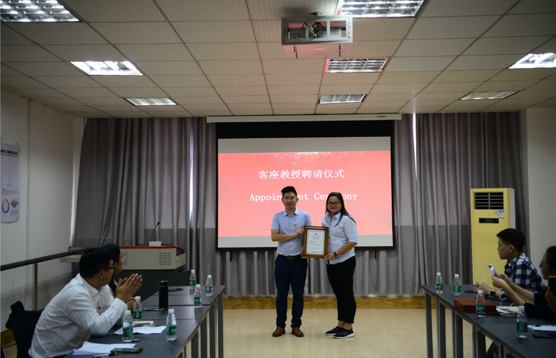 经管学院院长朱铁壁首先对琳娜副校长的到来表示欢迎,详细介绍了经管学院留学生的办学特色、人才培养、实习实训等内容,并就柬埔寨留学生在学院的学习生活、实习实训以及就业情况做了分享。琳娜女士对经管学院的留学生培养质量给予了高度肯定,并就柬埔寨万达学院的学生培养管理情况做了说明。双方就下一步柬埔寨留学生的培养、课程共建、师资互访、技能大赛以及实训实习等方面进行了深入沟通,并取得了共识。研讨会上,经管学院副院长王传彬代表学院聘请琳娜为客座教授并为其颁发证书。