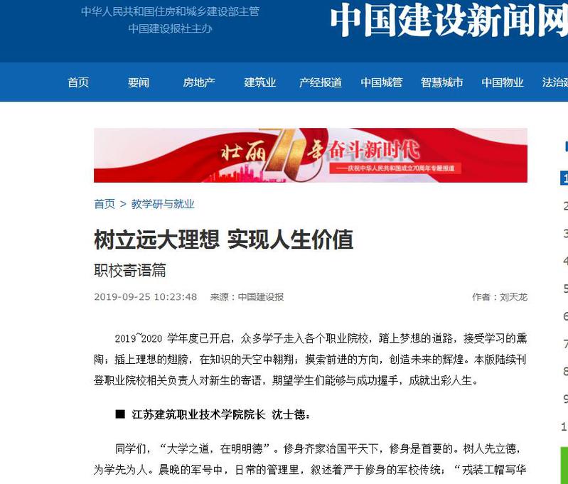 2019~2020 学年度已开启,众多学子走入各个职业院校,踏上梦想的道路,接受学习的熏陶;插上理想的翅膀,在知识的天空中翱翔;摸索前进的方向,创造未来的辉煌。本版陆续刊登职业院校相关负责人对新生的寄语,期望学生们能够与成功握手,成就出彩人生。