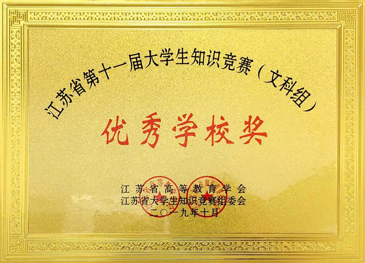 10月19日下午,江苏省第十一届大学生知识竞赛总决赛暨颁奖典礼在江苏教育频道演播厅举行。我校荣获“优秀学校奖”,共有54名学生获奖,获奖总数排在全省同类院校前列。