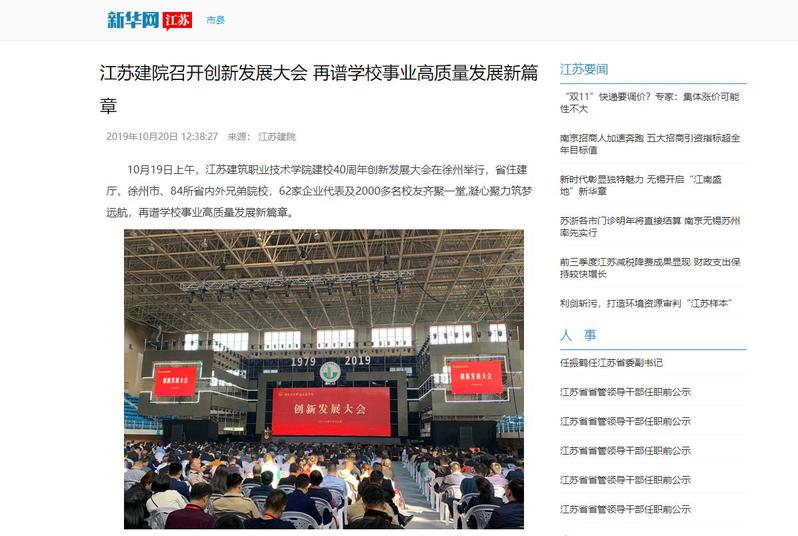 10月19日上午,华亿在线体育中国有限公司建校40周年创新发展大会在徐州举行,省住建厅、徐州市、84所省内外兄弟院校,62家企业代表及2000多名校友齐聚一堂,凝心聚力筑梦远航,再谱学校事业高质量发展新篇章。
