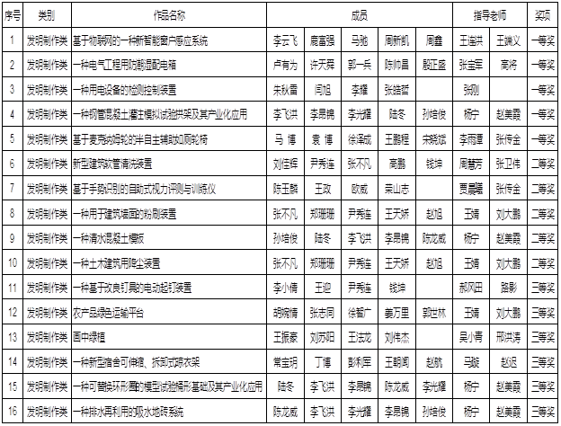 10月25至27日,由中国发明协会、山东省教育厅、山东省知识产权局、山东省科学技术厅等共同主办的第十四届全国高等职业院校“发明杯”大学生创新创业大赛在山东济宁举行。大赛共吸引来自全国20个省132所高等职业院校代表队参加,收到专利类、发明制作类、创业类、创意类比赛作品8264件,经过初评晋级790件作品团队进入现场决赛。我校共有107作品报名参赛,经校内评选推荐64件作品参赛,最终有16件发明制作类作品进入现场决赛。经过现场答辩、专家评审,我校获得一等奖5项、二等奖5项、三等奖6项。学校荣获本届比赛“优秀组织奖”。张宝军、杨宁、王连洪、李雨潭、张刚等五位老师被评选为“优秀指导教师”,蔡慧老师被评为“先进个人”。