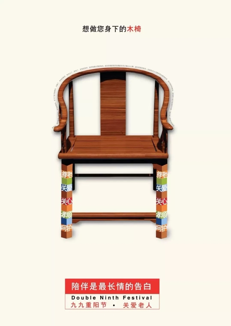《陪伴》的作者,是该校艺术设计学院视觉传达专业的曾帅。他说,设计的灵感围绕自己儿时的回忆,爷爷在他心中留下了比较深刻的印象。用拐杖,座椅,还有蒲扇这些具有象征意义的图形,组合在一起,把拐杖变得更长,椅子变得更加稳固,表现对老人的关怀、尊重。