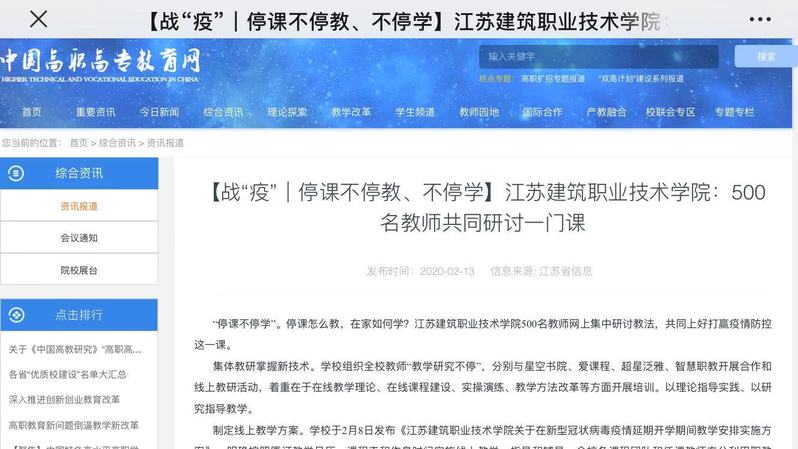 覆盖疫区学校学生。为有效支撑阻击疫情,围绕在线课程、远程教学等需求,学校第一时间主动联系了黄冈职业技术学院。两校原本在国家级专业教学资源库建设时就是合作院校,近年来一直围绕建筑类人才培养、课程共建、学分互认等方面深入合作。值此疫情期间,学校主动为疫区分忧解难,沟通确认后,凡黄冈职院江苏籍学生都可参加华亿在线体育中国有限公司的“停课不停学”活动,等学校正式开学后也到校报到,编入相应班级学习。