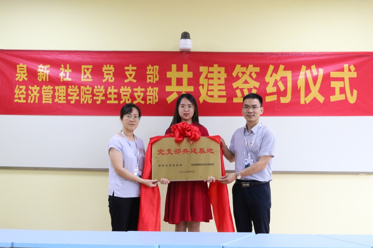 6月12日,经济管理学院学生党支部与泉新社区党支部在教一楼206举办共建签约仪式。泉新社区党支部代表成员和经济管理学院学生党支部全体成员参加了签约仪式。