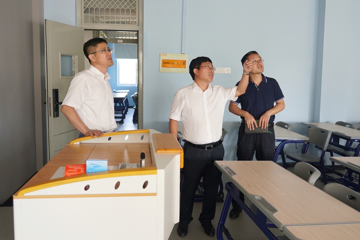 9月5日上午,开学伊始,校领导沈士德、曾凡远、蒋兆峰带领相关职能部门负责人,对开学各项准备工作进行全面检查。