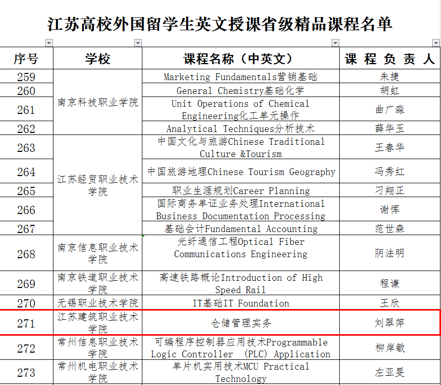 日前,江苏省教育厅对外合作与交流处公布了2020年度江苏教育对外开放质量提升工程项目评定结果,我校经济管理学院物流管理专业的《仓储管理实务》课程经过专家评审,获评“江苏高校外国留学生英文授课省级精品课程”。