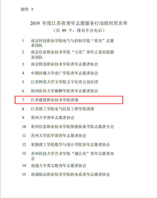 近日,共青团江苏省委、江苏省志愿者协会联合下发《关于表彰2019年度江苏省优秀青年志愿者、志愿服务项目、志愿服务行动组织奖、志愿服务事业贡献奖的决定》,我校斩获多项荣誉。