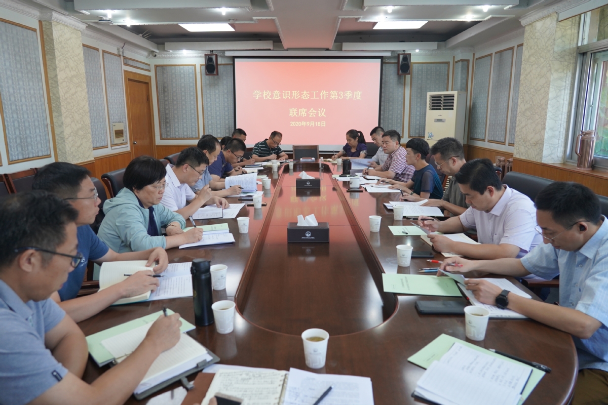 党委组织部、党委办公室、执纪审查处、党委教师工作部、党委学工部、党委保卫部、团委、教务处、科技处、信息中心、图书馆、学报、质量办、马克思主义学院、国际学院等单位负责人就第3季度意识形态工作情况作了详细介绍,分析存在的问题和风险,并就下一步如何抓好意识形态工作责任制落实作交流研讨。