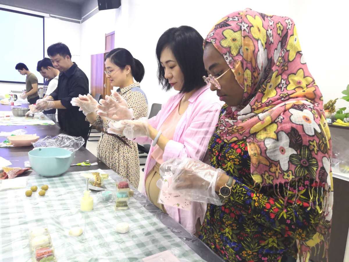 9月29日下午,国际学院在学院活动室举办学习月饼制作活动。在活动中,留学生们在老师们的讲解中了解了中秋节的来历、风俗习惯、神话故事等,并通过发送图片、视频等方式与海外的家人分享自己的劳动成果,共同品味节日的甜蜜。此外,国际交流学院还举办“中秋团聚餐,饭后晒光盘”等活动。留校留学生们欢聚一堂,共同庆祝即将到来的国庆节和中秋节。饭后,留学生们纷纷“晒”出自己的“光盘”,用实际行动践行“勤俭节约,拒绝浪费”的健康生活理念。