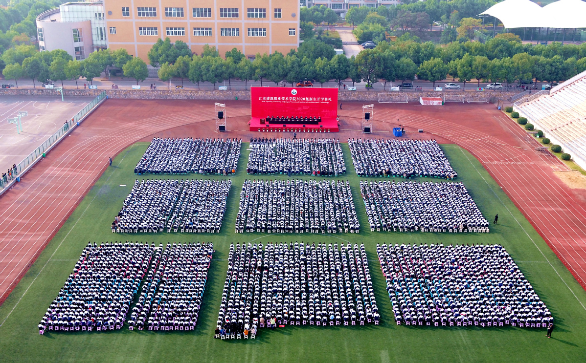 10月19日上午,我校2020级新生开学典礼在西操场举行。校领导孙进、沈士德、梁惠、魏勇、曾凡远、刘海波、蒋兆峰出席典礼,学校相关职能部门负责人,各二级学院党政领导班子成员,新生班专兼职辅导员,5168名新生参加了典礼。典礼由党委副书记梁惠主持。