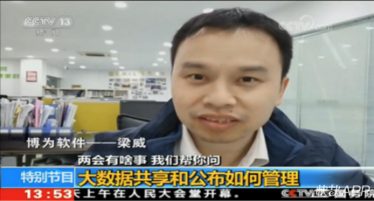 2018年3月5日,CCTV-13新闻频道《两会有啥事我们帮你问》特别节目中,作为全国大数据行业的代表,梁威接受CCTV13的采访报道,就大数据领域立法问题与全国人大代表在CCTV13新闻频道展开对话;