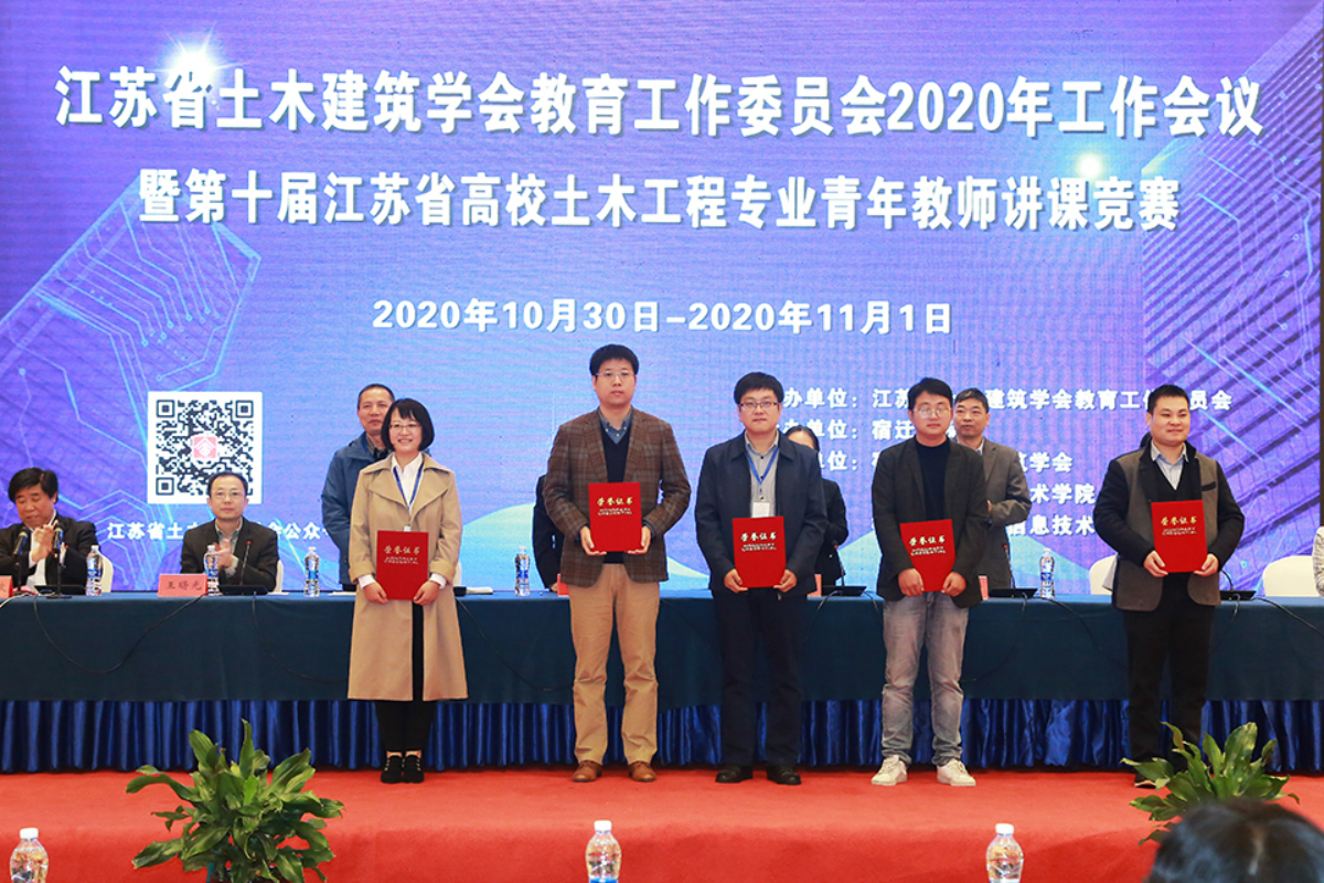 10月30日-11月1日,江苏省土木建筑学会教育工作委员会2020年年会暨第十届江苏省高校土木工程专业青年教师讲课竞赛在宿迁学院举行。本次讲课竞赛共有来自全省30余所本专科高校的80余名教师参赛,比赛层次高,获奖难度大。我校建筑建造学院倪晓燕荣获特等奖,陈飞敏、赵志强荣获一等奖,学校获优秀组织奖,充分展现了我校青年教师扎实的教学能力和风采。