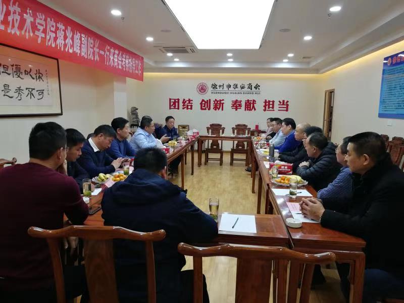 为深入推进学校与地方企业合作,加强相关专业服务地方经济能力,12月5日,副院长蒋兆峰一行赴徐州市淮安商会调研,受到商会会长徐亚等的热情接待。