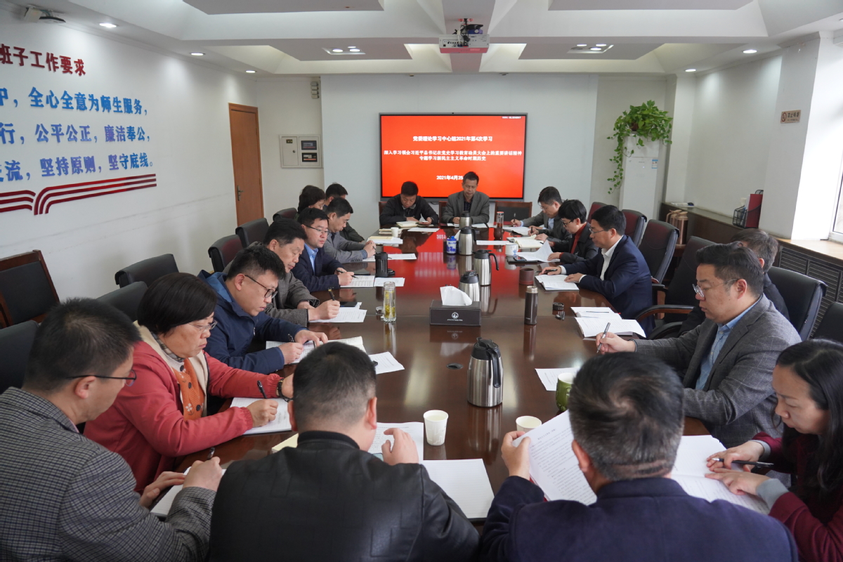 4月25日下午,学校党委理论学习中心组在行政楼第一会议室召开2021年第4次学习会议,深入学习领会习近平总书记在党史学习教育动员大会上的重要讲话精神,专题学习新民主主义革命时期历史。院长沈士德教授主持会议,校党委理论学习中心组成员参加学习。